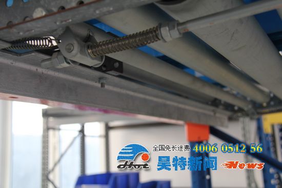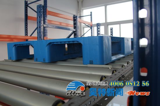 2.因?yàn)橹亓κ截浖苡?°的斜坡,所以重力式貨架上的托盤會隨著貨架的方向向下滑動。